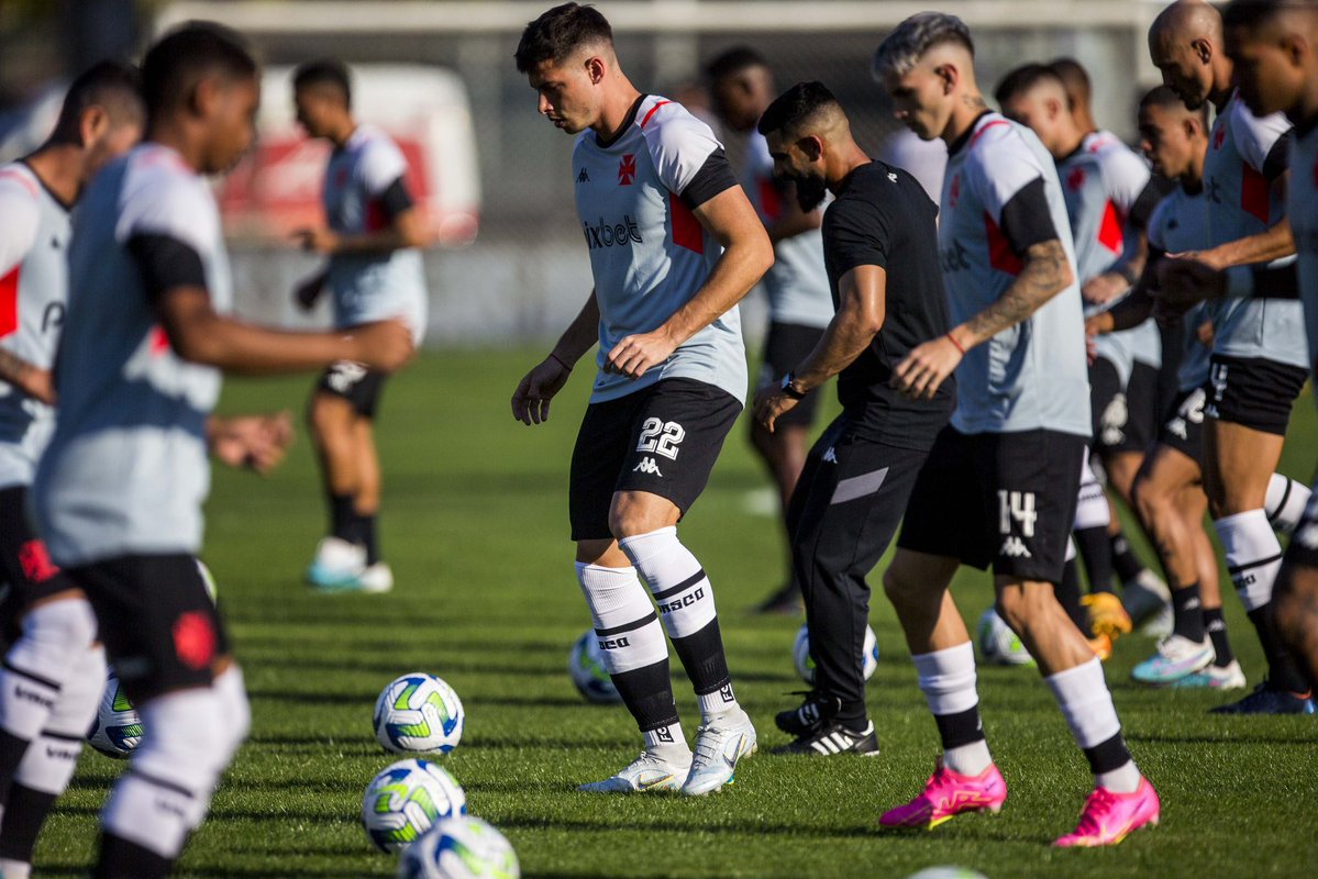 08/07/23 - Jogadores de Vasco e Cruzeiro se aquecem em São Januário; veja foto