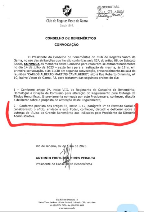 31/07/22 - Conselho de Beneméritos se reunirá nesta 2ª para discutir pareceres de Luis Fernandes e Alexandre Bittencourt