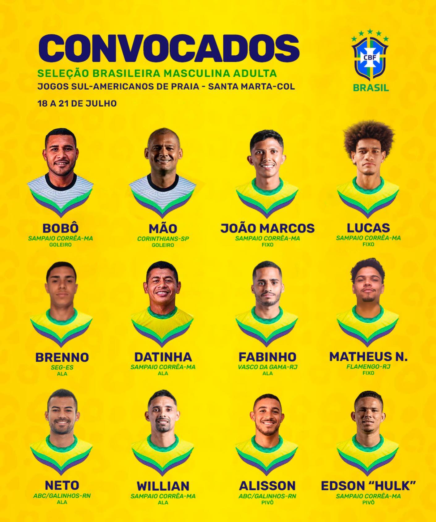 A Seleção Brasileira de Beach Soccer foi convocada pelo técnico Marco Octavio para a disputa do V Jogos Sul-Americanos de Praia, em Santa Marta, na Colômbia. ⚽️🏖️🇧🇷