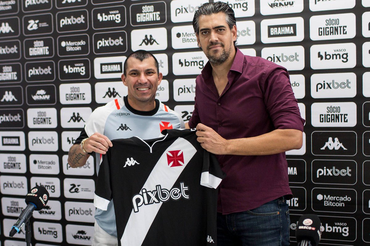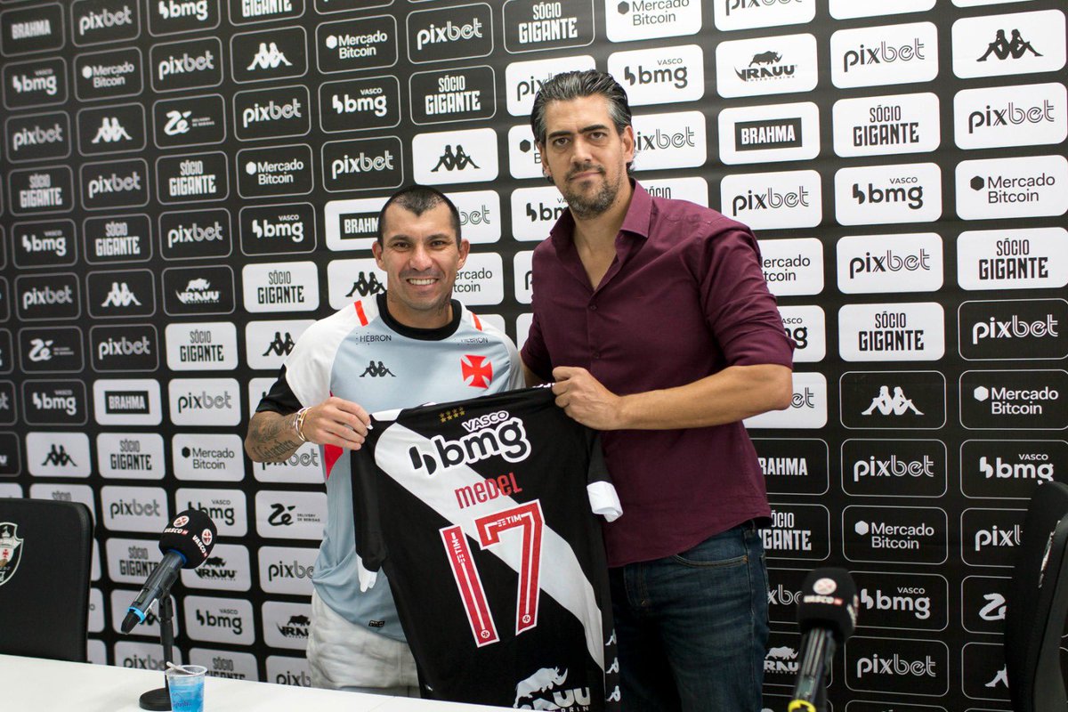 Vasco publica fotos de Medel recebendo a camisa 17 das mãos de Paulo Bracks