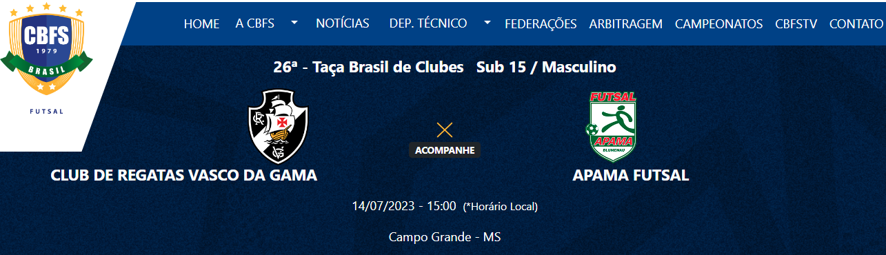 12/07/23 - Futsal Base: Vasco enfrenta o Ismaily 31-MS pela Taça Brasil Sub-15 nesta 4ª-feira às 21h com Youtube