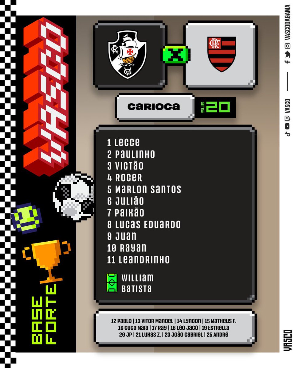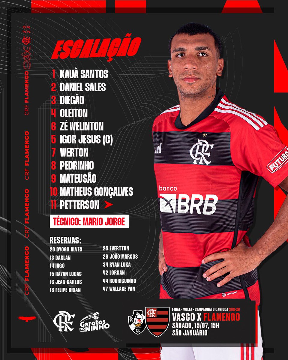 Os #GarotosDoNinho do Sub-20 estão escalados para o clássico decisivo contra o Vasco, valendo o título Carioca! A bola rola às 15h, em São Januário, com transmissão ao vivo da FlaTV.