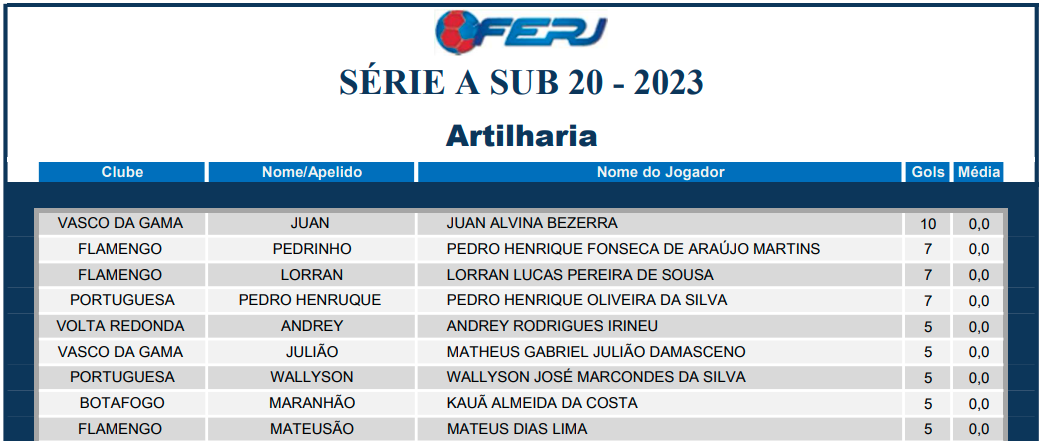 Fonte: NETVASCO (texto), FFERJ (artilharia)
