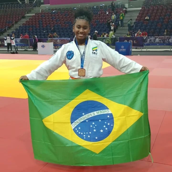 Com muita garra e determinação em sua primeira participação pela Seleção Brasileira, nossa guerreira Letícia Pereira @lelesant_14 (+64kg) conquistou a medalha de Bronze em sua categoria 🥉
