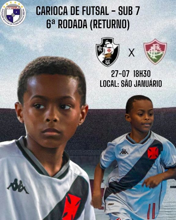 Futsal Base: Pelo Carioca Sub-07, Vasco enfrenta o Fluminense nesta 5ª-feira às 18h30 em São Januário