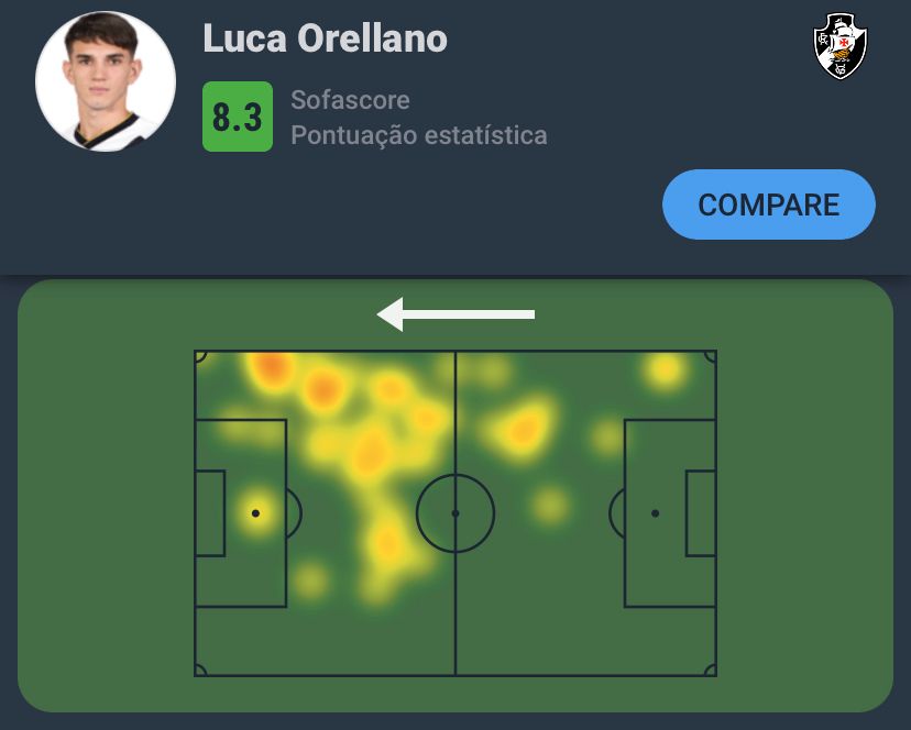 Luca Orellano teve a maior Nota Sofascore (8.3) do time em Corinthians 3-1 Vasco!