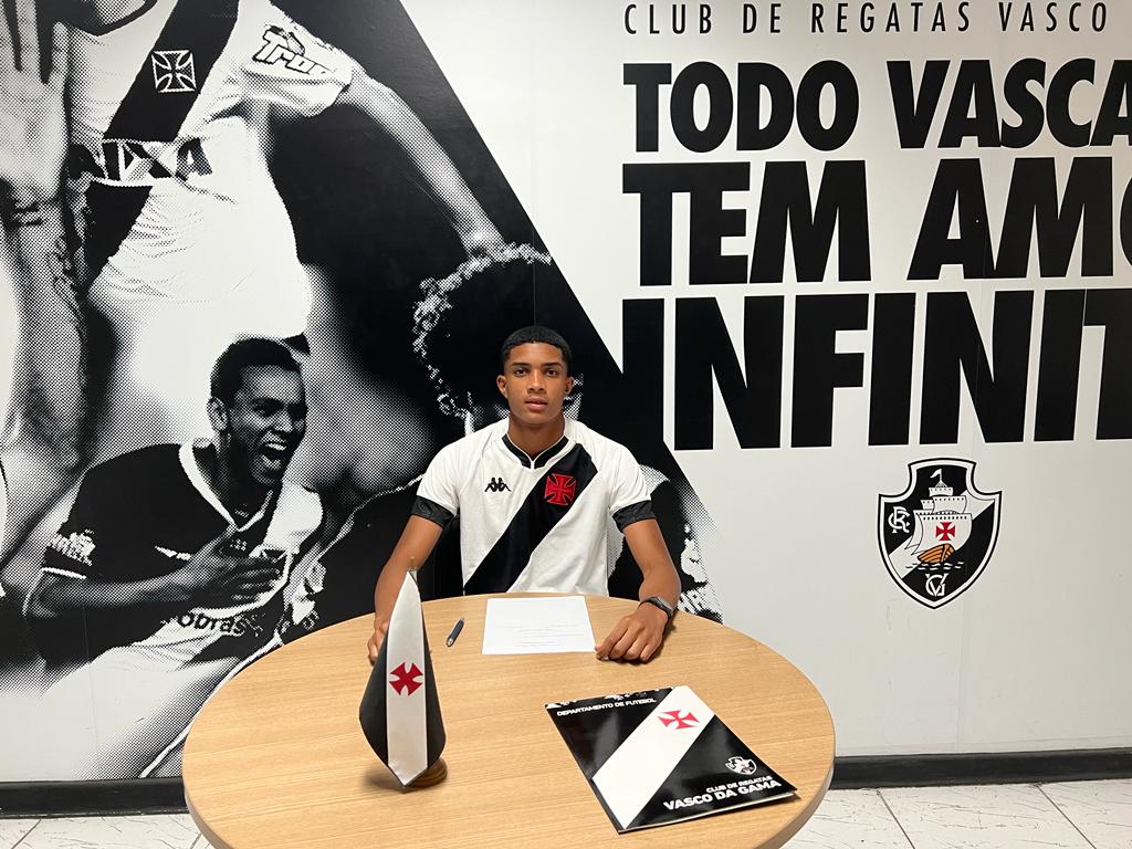 O zagueiro Bruno, da categoria Sub-17, assinou seu primeiro contrato profissional com o Vasco da Gama na tarde desta segunda-feira, em São Januário.