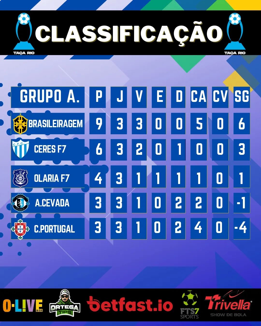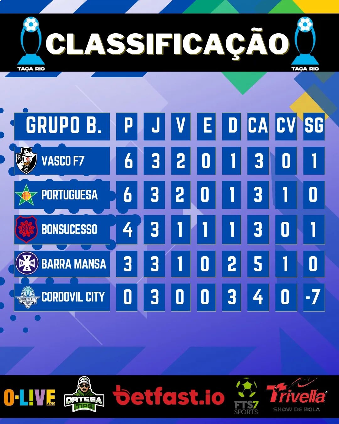 Saiu a classificação atualizada após a terceira rodada da Taça Rio @betfast.io com algumas mudanças de posição.