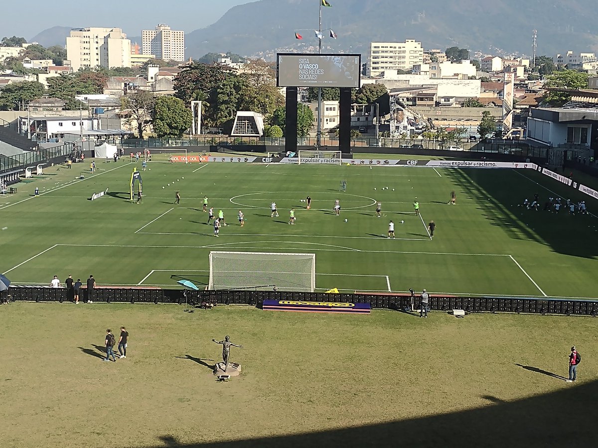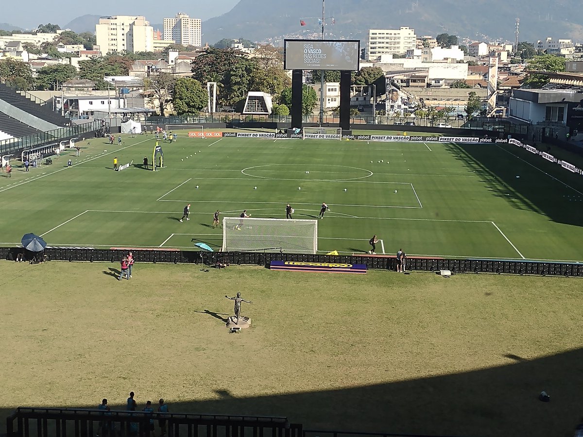 Os jogadores de linha também aquecem no gramado. #lanceVASCO