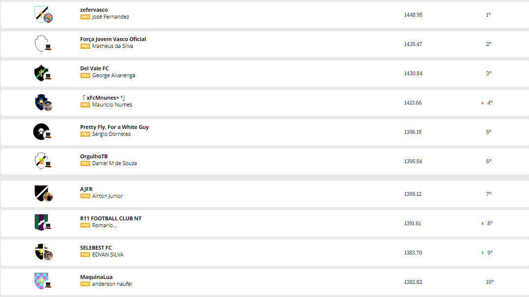 10/07/23 - Cartola: Confira a classificação da Liga NETVASCO após a 14ª rodada