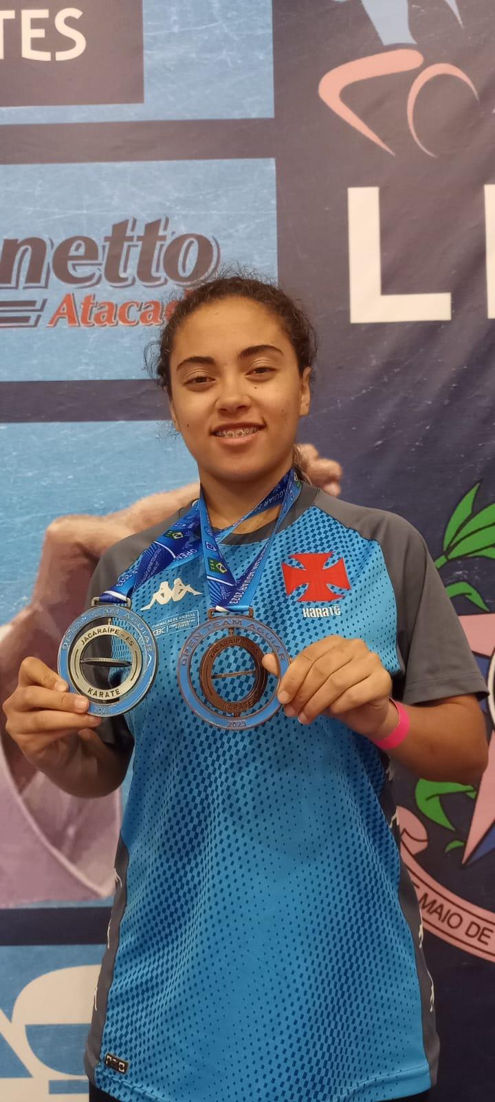 Mariana Oliveira conquistou duas medalhas, uma de prata e uma de bronze, nas categorias kata e kumite, respectivamente. As habilidades de Mariana mostraram a versatilidade de seu talento no tatame em performances consistentes.
