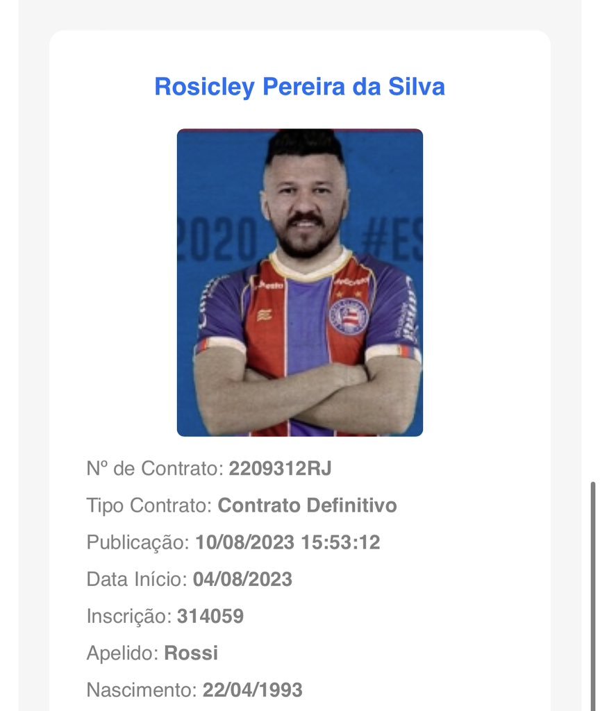 Rossi está registrado no BID da CBF e pode enfrentar o Red Bull Bragantino