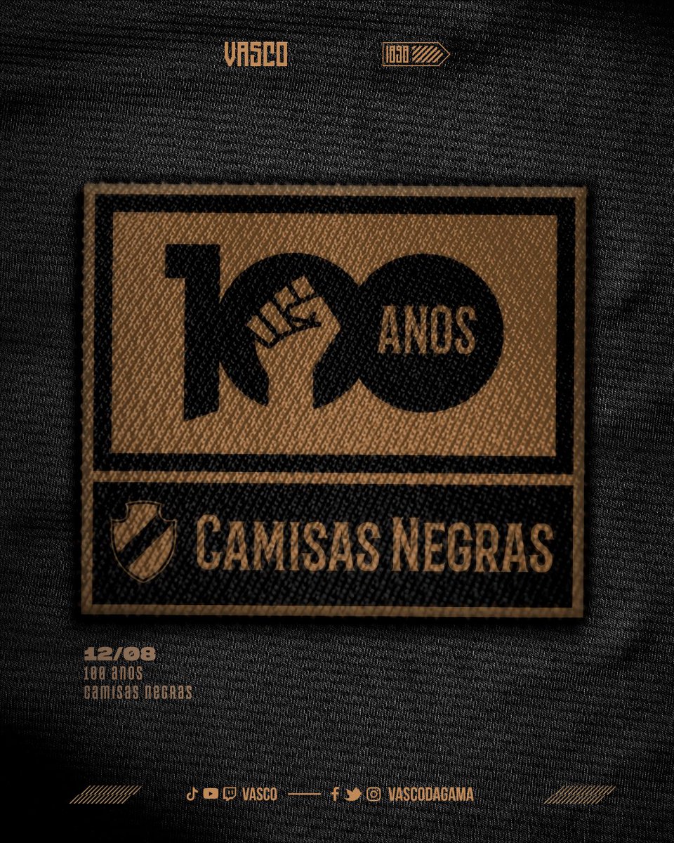 Vasco faz postagem por ocasião dos 100 anos dos Camisas Negras