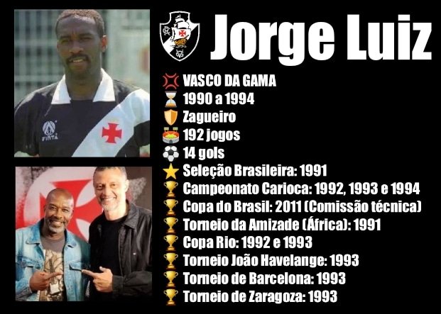 Hoje é aniversário do Jorge Luiz (58 anos), ex-zagueiro do Vasco da Gama no início dos anos 90, não só se destacava pela forte marcação, mas tbm nas cobranças de falta. Além de funcionário do clube entre 2008 a 2014. Apesar ter jogado nos 4 grandes do RJ, se declara vascaino!🎂💢