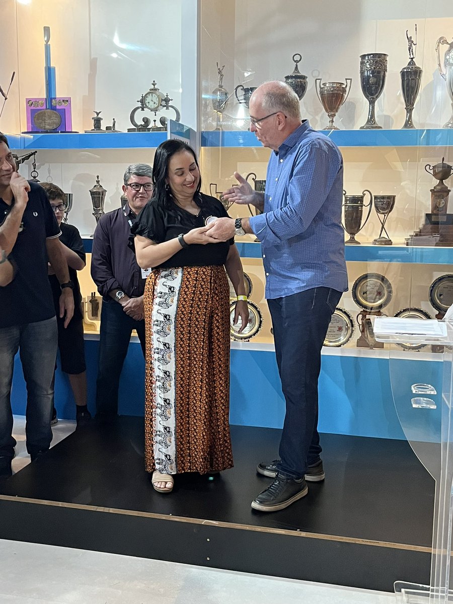 Renato Passini, parente de Mingote, lendário atleta dos Camisas Negras, recebendo também a Honraria Pai Santana.