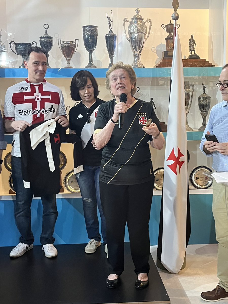Filha de Adão, o autor do primeiro gol da história do Vasco da Gama, recebendo a Honraria Pai Santana.