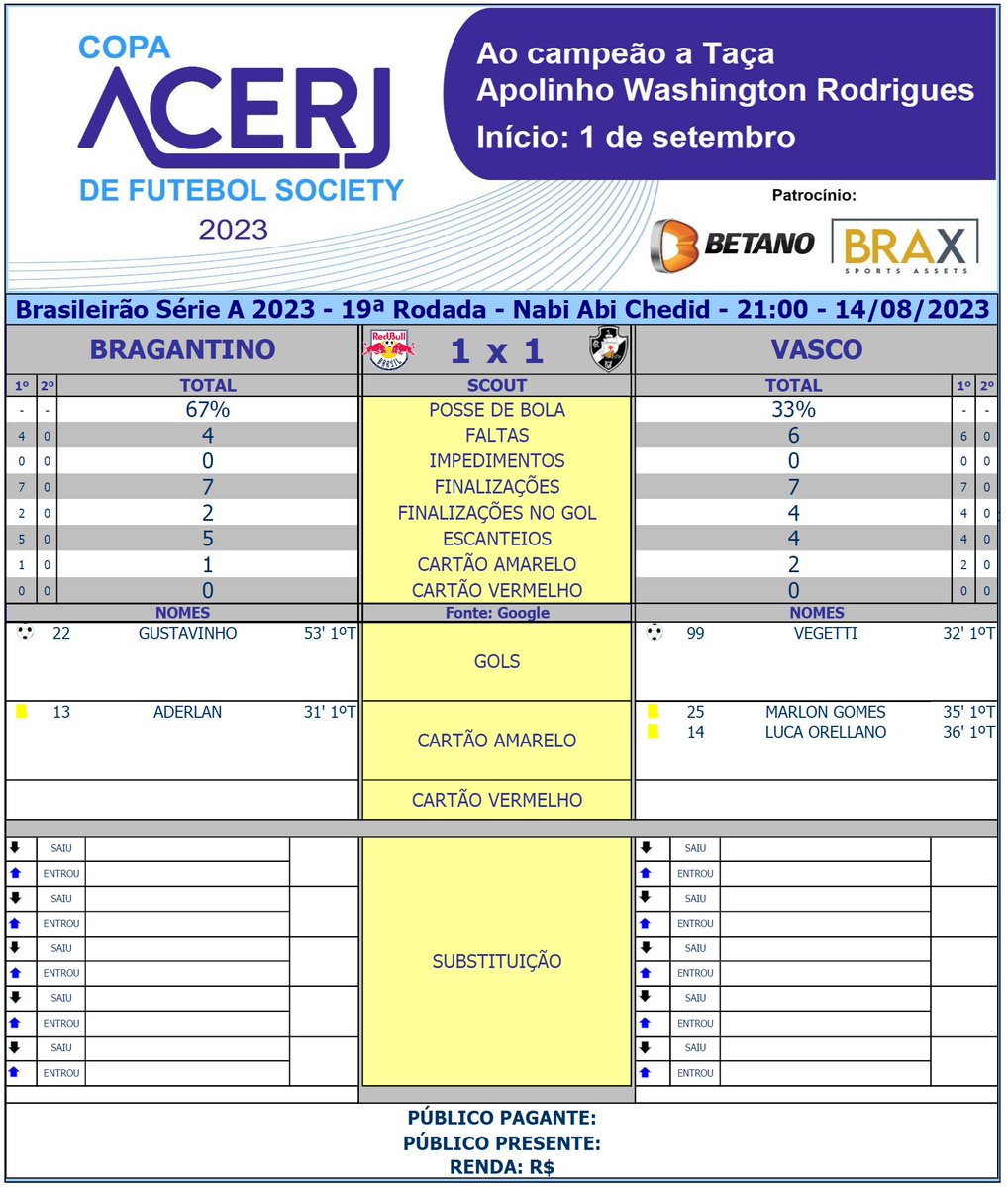 Scout do 1º Tempo de Bragantino e Vasco pela 19ª Rodada do Campeonato Brasileiro 2023 no Nabi Abi Chedid (Fonte: Google) #Acerjinforma #Brasileirao #BRAxVAS #Bragantino #Vasco @Brasileirao @RedBullBraga @VascodaGama