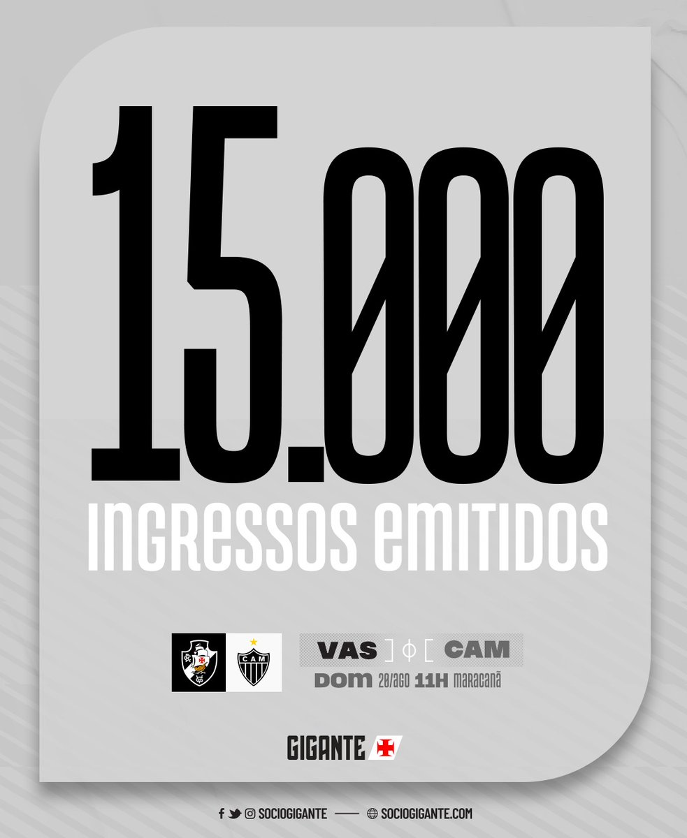 Já foram emitidos 15 mil ingressos para Vasco x Atlético-MG