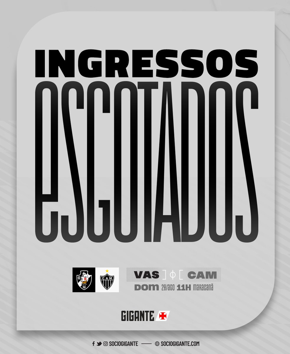 INGRESSOS PARA VASCO X ATLÉTICO-MG ESTÃO ESGOTADOS