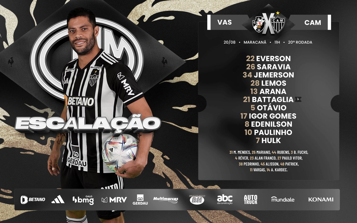 📋 GALO ESCALADO! Confira nossa escalação para enfrentar o Vasco, pelo @Brasileirao.