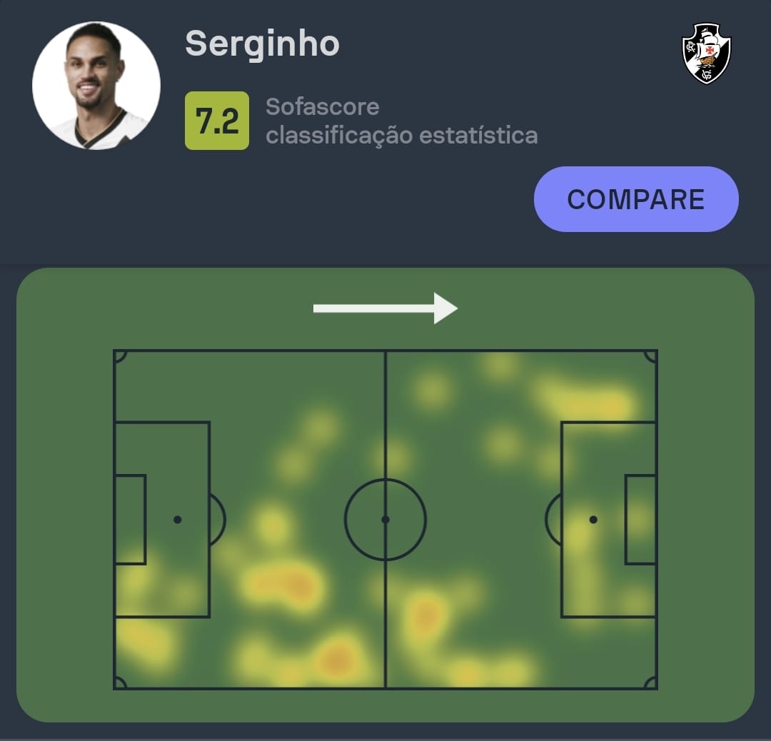 Veja os números de Serginho em Vasco 1 x 0 Atlético-MG