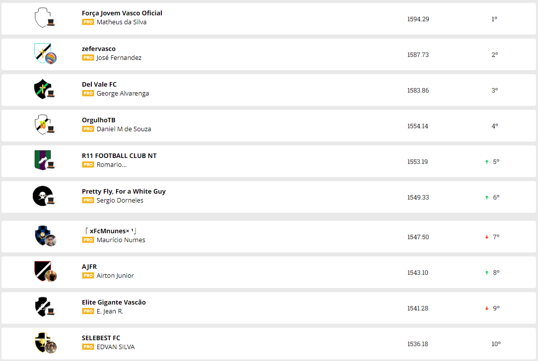 10/07/23 - Cartola: Confira a classificação da Liga NETVASCO após a 14ª rodada