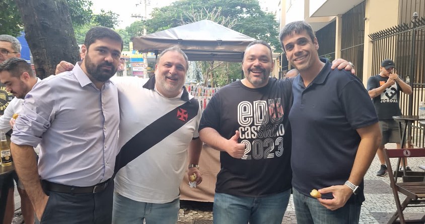 Uma terça-feira agradável em que o assunto foi Vasco, claro. Eu, Eurico Miranda, Pedro Strozembeg e Leonardo Rodrigues, outros candidatos de oposição, nos encontramos para um bate-papo no Bar do Momo, com a presença de outros donos de bares tradicionais, todos vascaínos. Tudo por um Vasco mais forte.