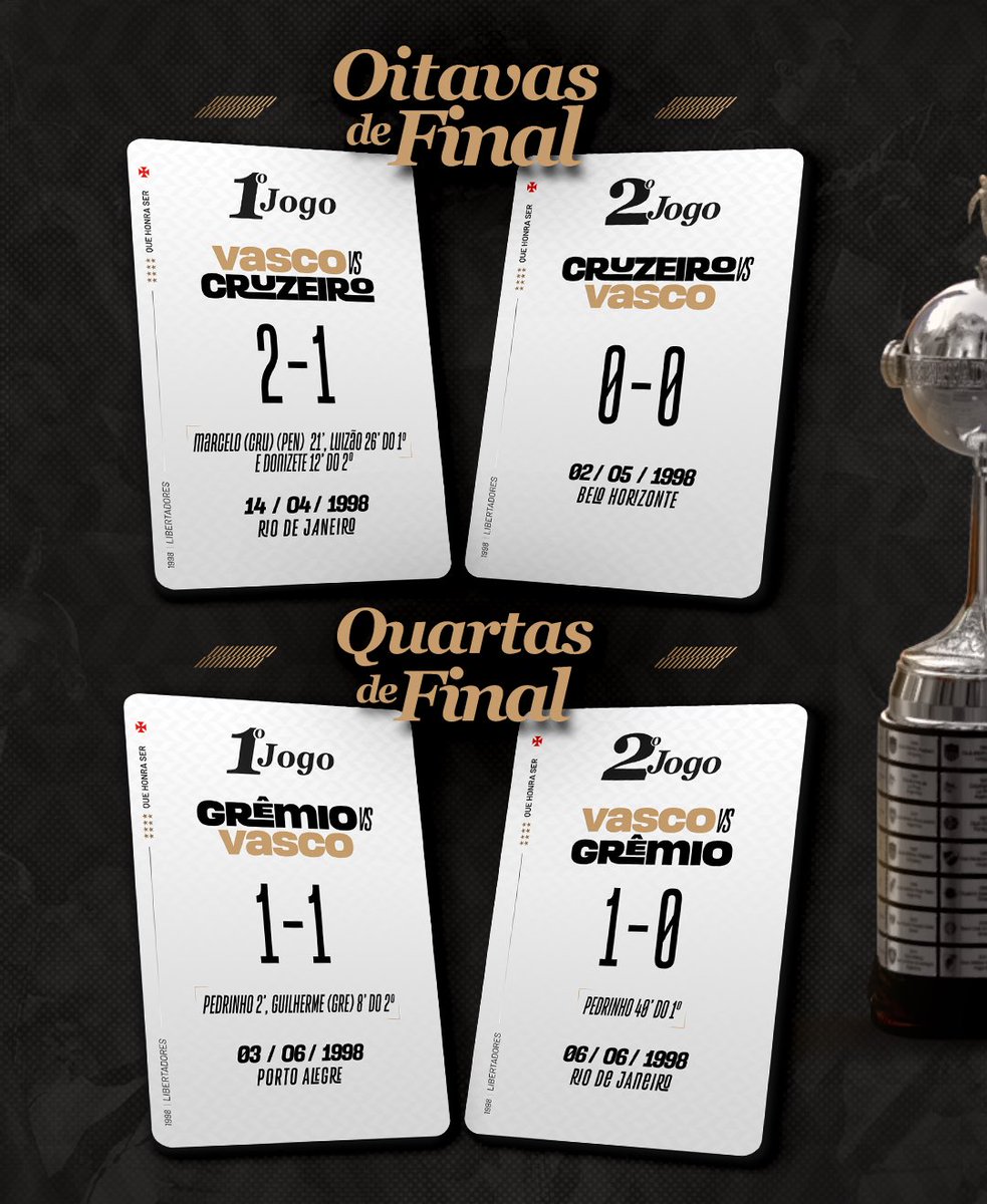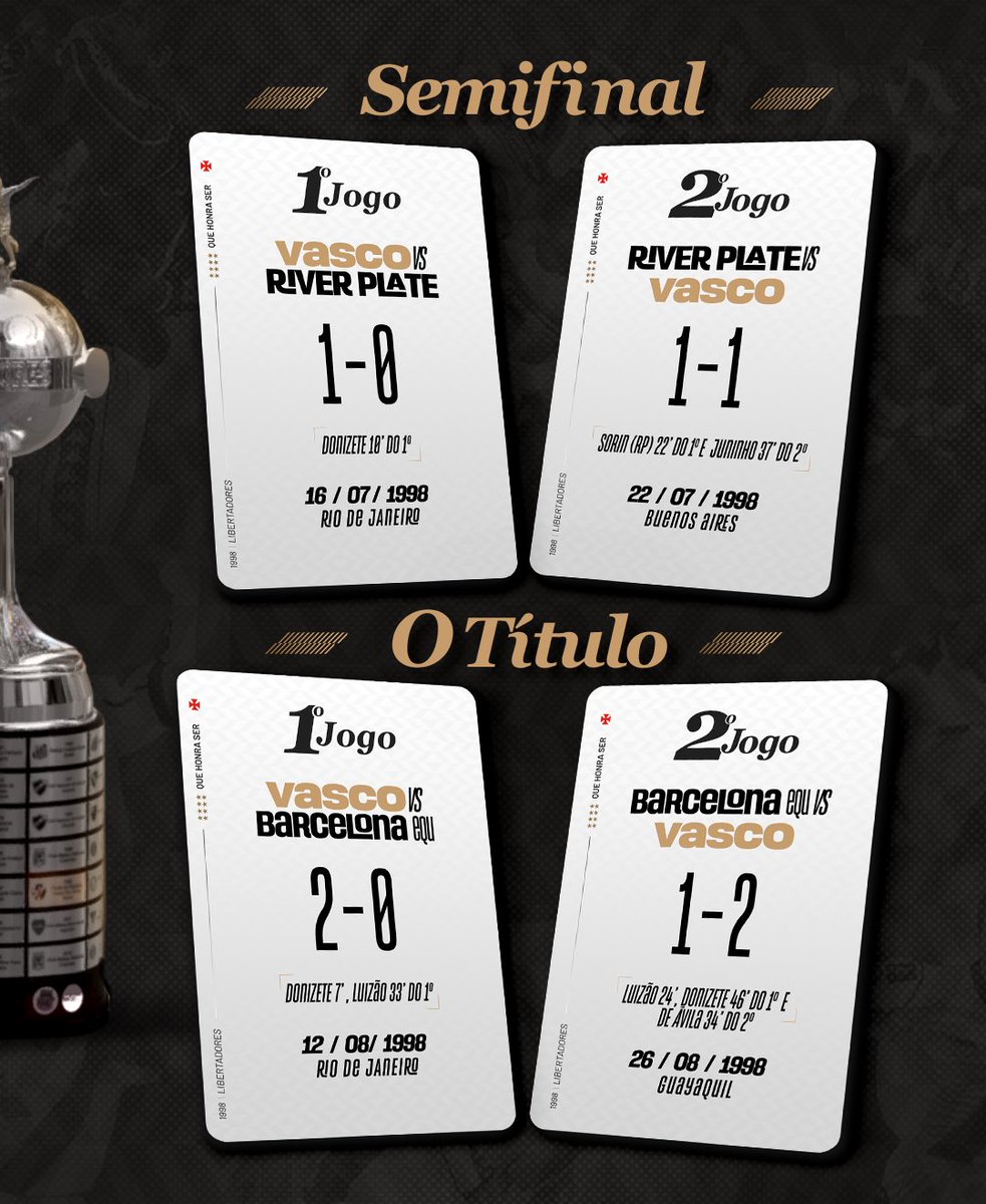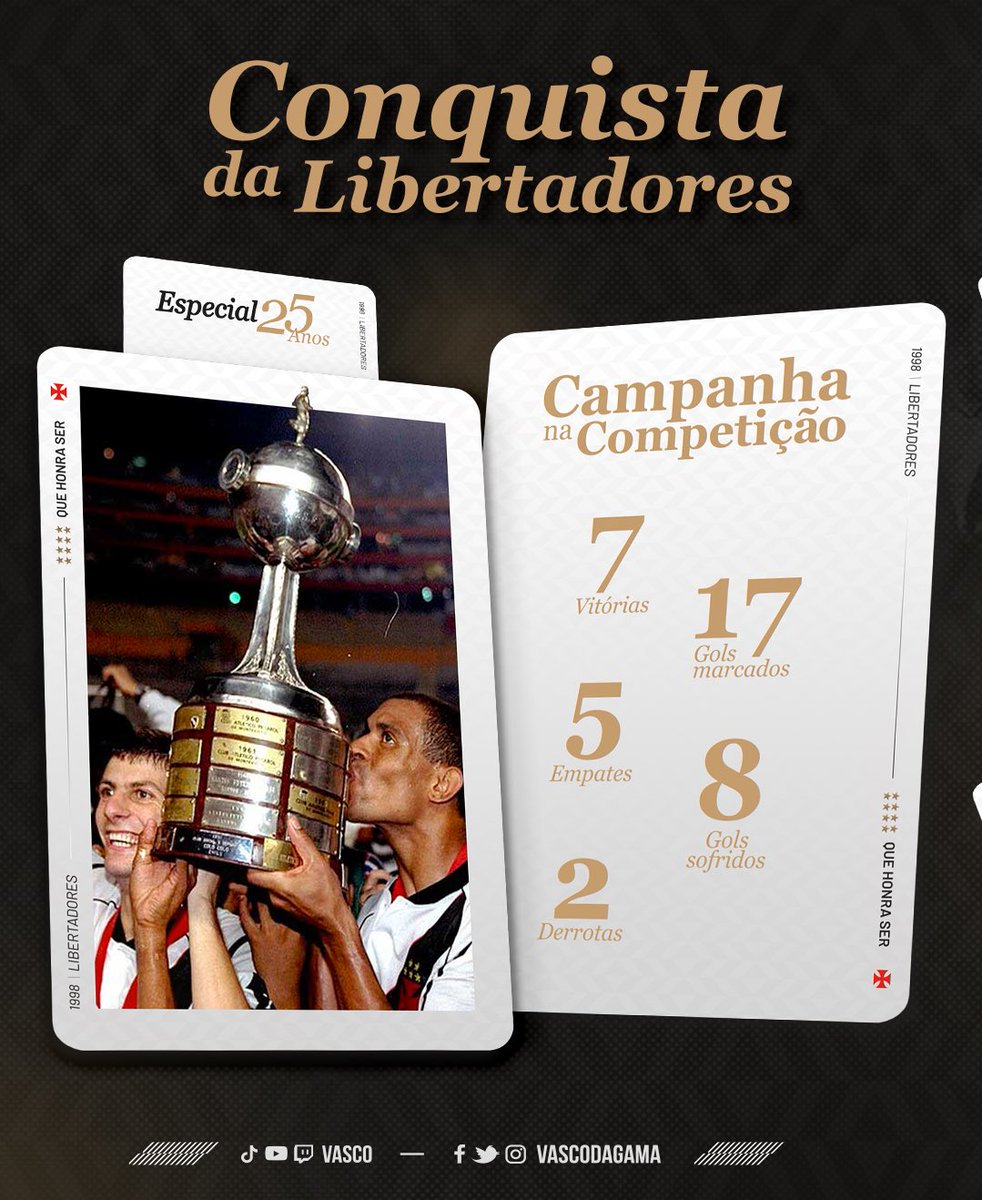 Há exatos 25 anos, no dia 26 de agosto de 1998, o 𝐕𝐀𝐒𝐂𝐎 vencia o Barcelona-EQU por 2 a 1, em Guayaquil, e conquistava a Libertadores da América, no ano do centenário!