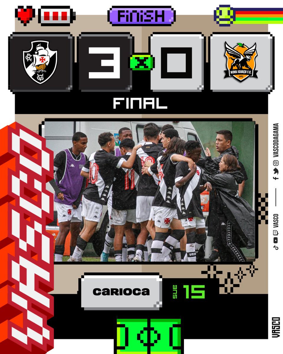 O Vasco da Gama venceu o Nova Iguaçu por 3 a 0 na manhã deste sábado, no Estádio Nivaldo Pereira, em Nova Iguaçu, pela quarta rodada do Campeonato Carioca Sub-15. Lucas Rafael, Jonatas Simas e Luis Felipe anotaram os gols do Vasco, que mantém os 100% de aproveitamento na competição.