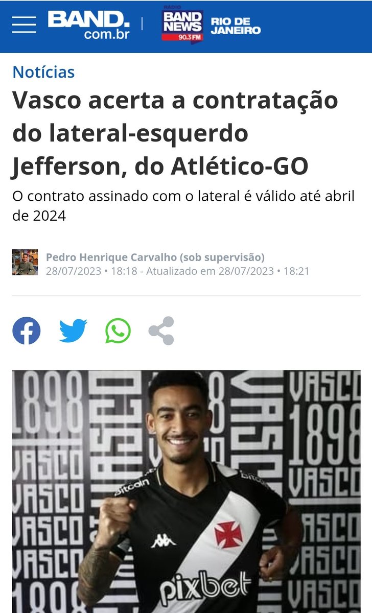 Fonte: Twitter do jornalista Emerson Rocha/Atenção Vascaínos