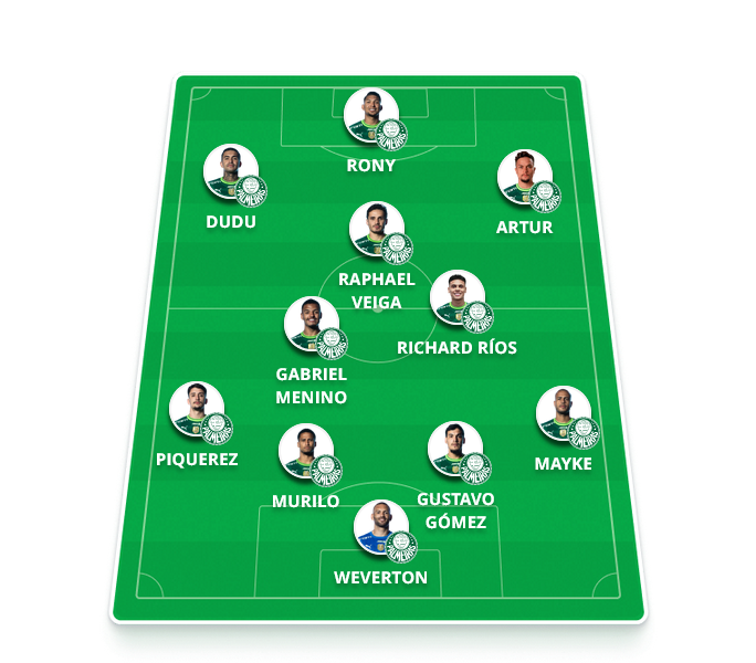 Time provável: Weverton; Mayke, Gustavo Gómez, Murilo (Luan) e Piquerez (Vanderlan); Gabriel Menino, Richard Ríos e Raphael Veiga; Artur, Dudu (Breno Lopes) e Rony (Flaco López).