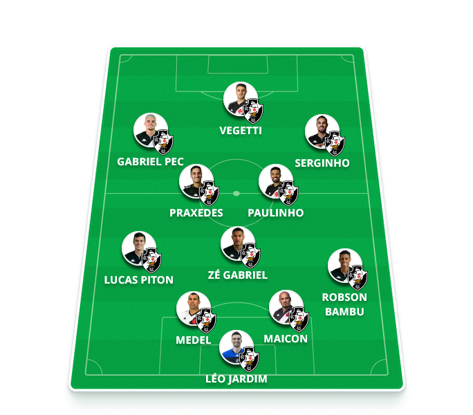 Time provável: Léo Jardim, Robson, Medel, Maicon (Capasso), Piton, Zé Gabriel, Paulinho, Praxedes, Serginho, Pec e Vegetti.