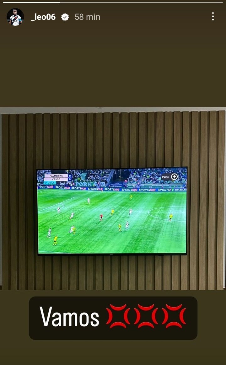 Suspenso, Léo assiste a Palmeiras x Vasco pela TV e posta foto; veja