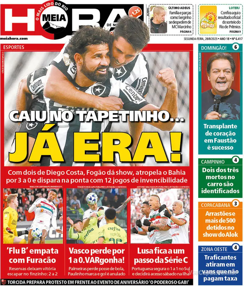 Pela 21ª rodada do Campeonato Brasileiro, o Vasco foi derrotado pelo Palmeiras por 1 a 0 no domingo no Allianz Parque. O confronto ficou marcado pelo gol anulado de Paulinho pelo VAR, quando o jogo ainda estava empatado. Veja as capas dos jornais.