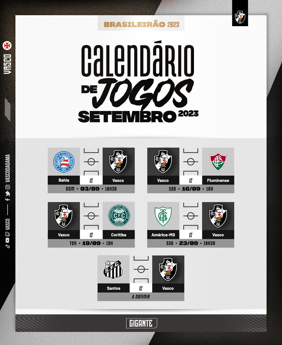Vasco divulga calendário de jogos do mês de setembro; confira