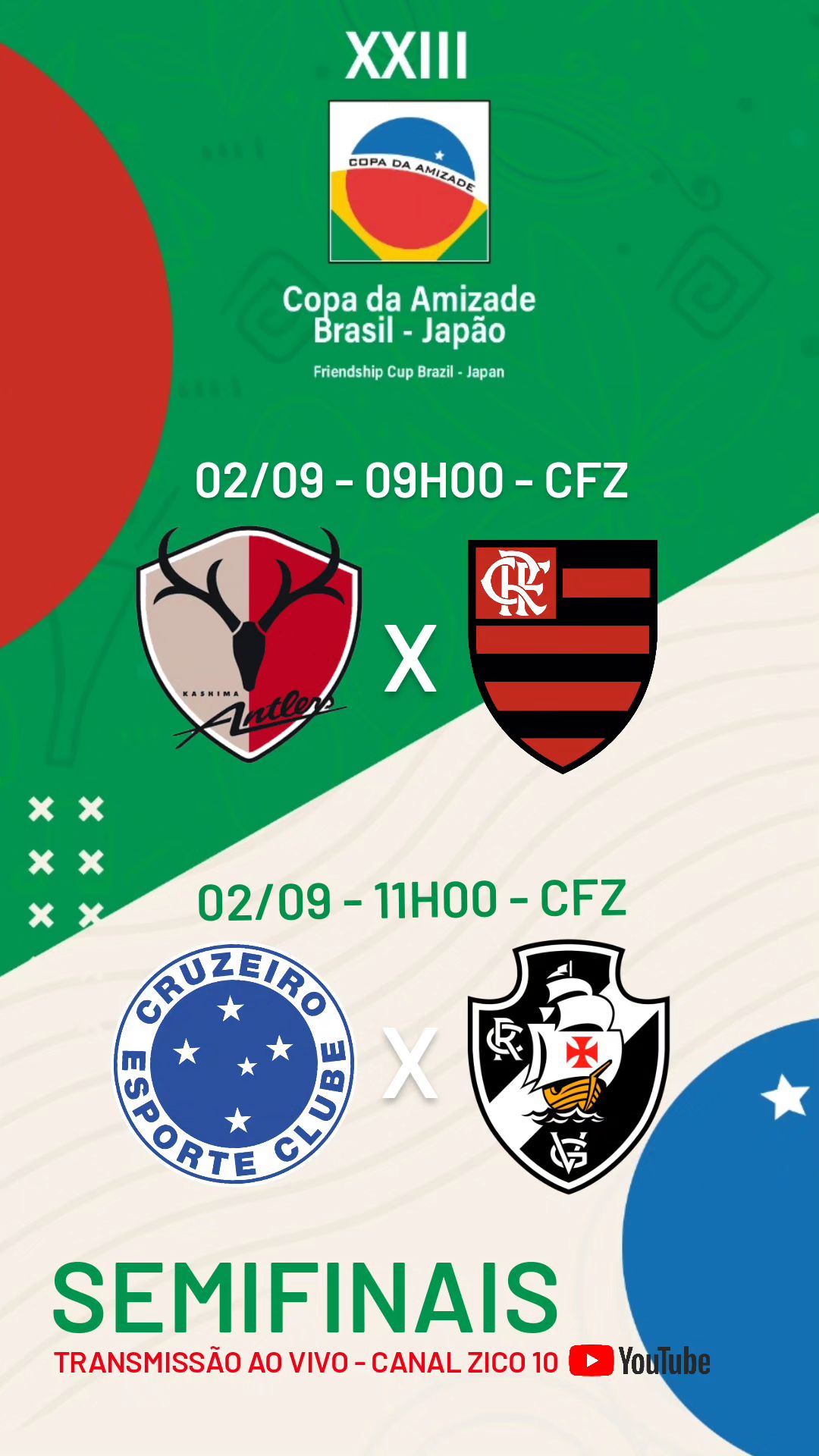 31/08/23 - Sub-15: Vasco enfrenta o Cruzeiro nesta 5ª às 10h no último jogo da 1ª fase da Copa da Amizade Brasil-Japão