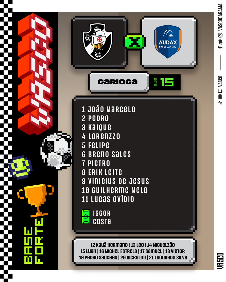 Vasco escalado para enfrentar o Audax-RJ 💢