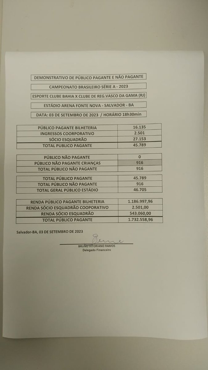 03/09/23 - Confira as estatísticas de Bahia 1 x 1 Vasco