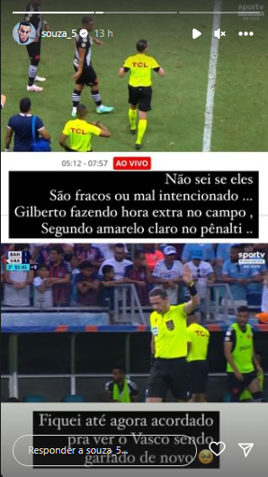 Souza: 'Fiquei até agora acordado para ver o Vasco sendo garfado de novo'