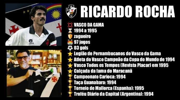 Hoje é aniversário do ídolo Ricardo Rocha, (61 anos), tetracampeão mundial pela Seleção como atleta do Vasco e capitão do inédito tricampeonato estadual do clube. O Xerife é vascaíno e santinha desde garoto, e um dos responsáveis pela vinda do Juninho em 95 para São Januário!🎂💢