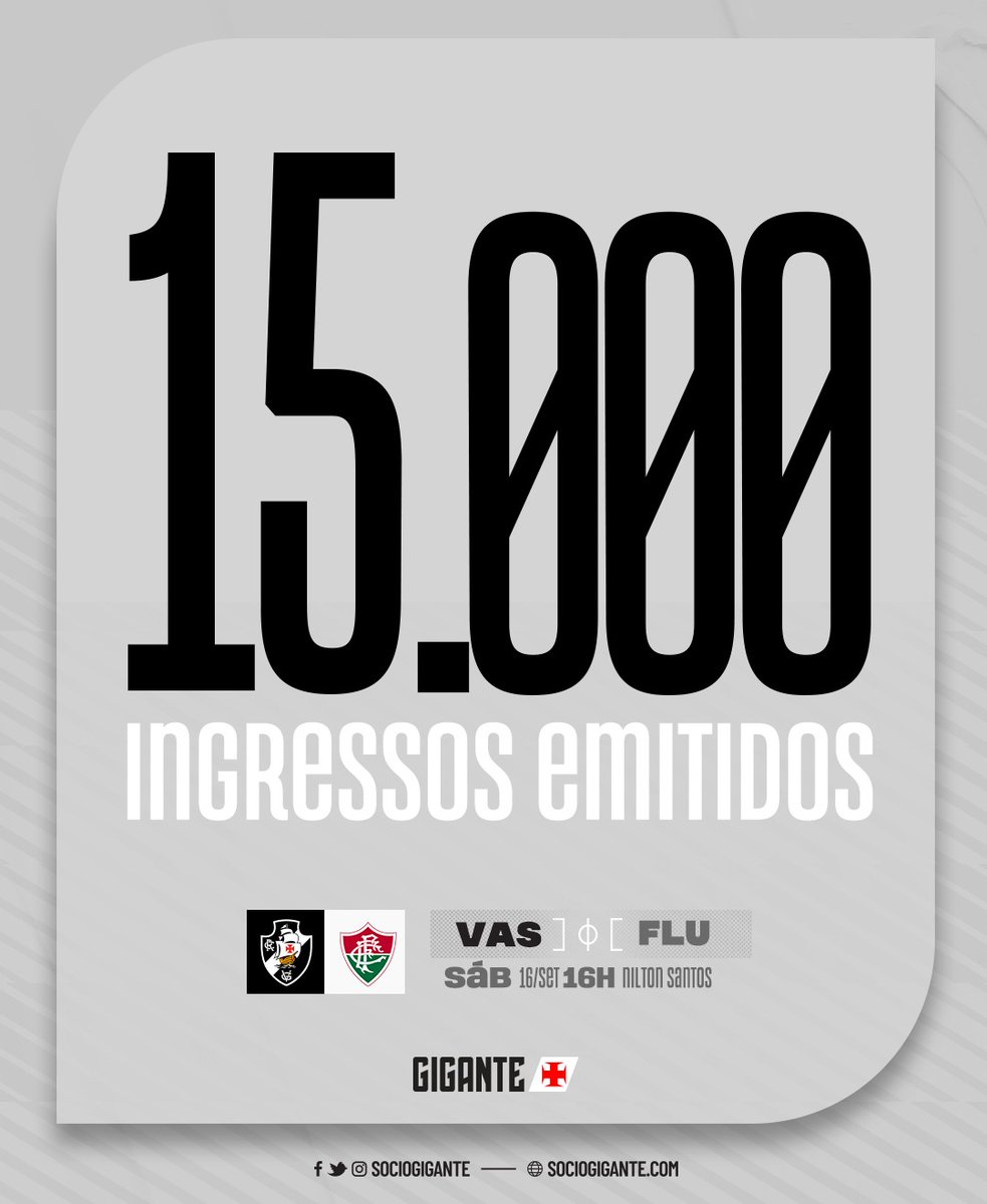 Já foram emitidos 15 mil ingressos para Vasco x Fluminense