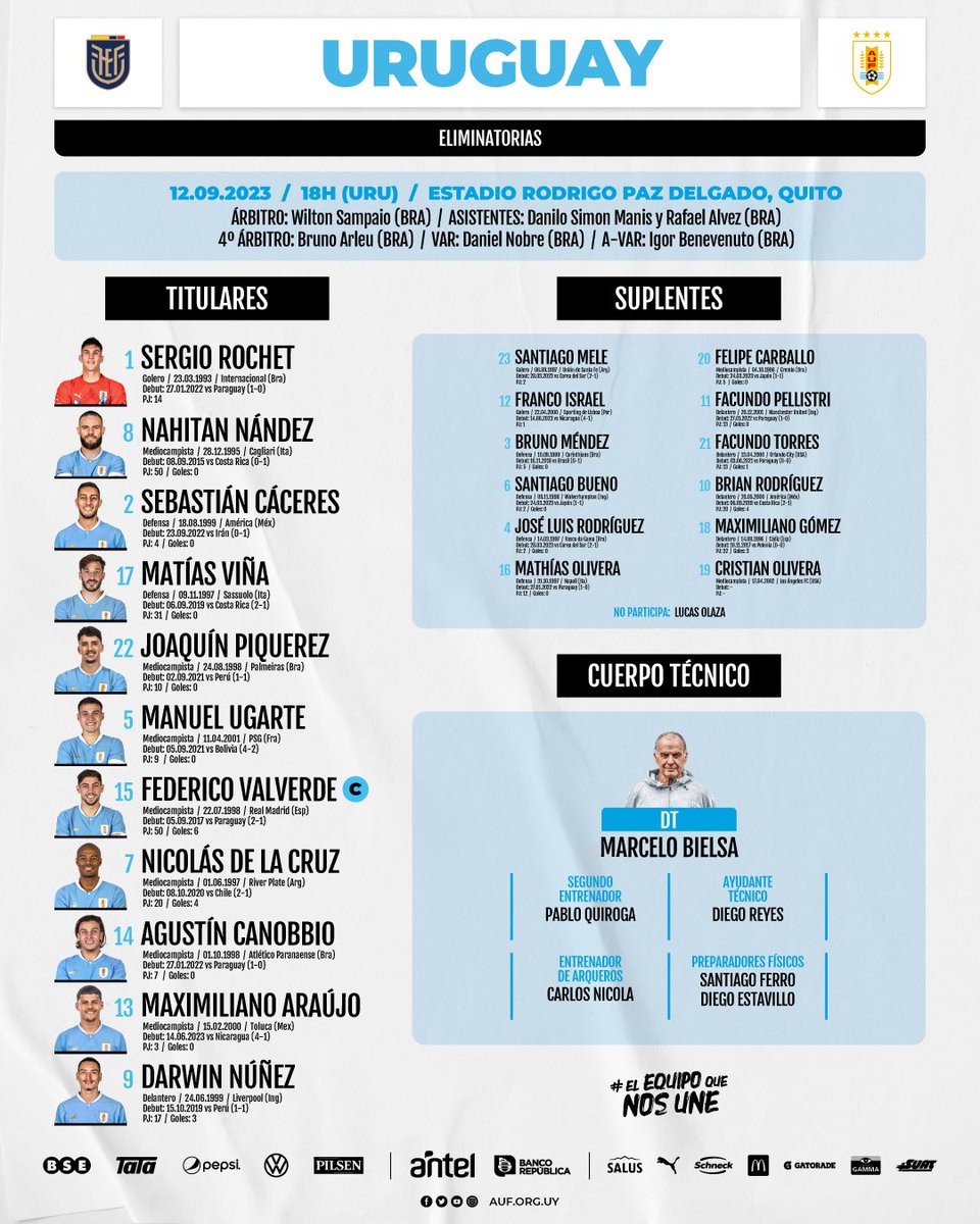 Detalles sobre el plantel que enfrenta hoy a Ecuador, de visita, por Eliminatorias.