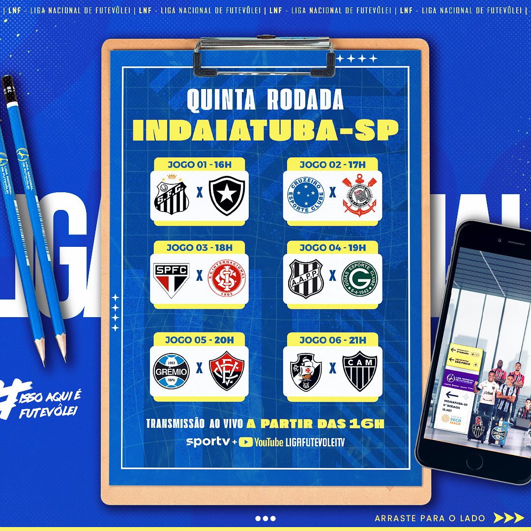 📺📱Cobertura ao vivo pelos canais sportv e também no Canal da Liga Nacional de Futevôlei no YouTube.