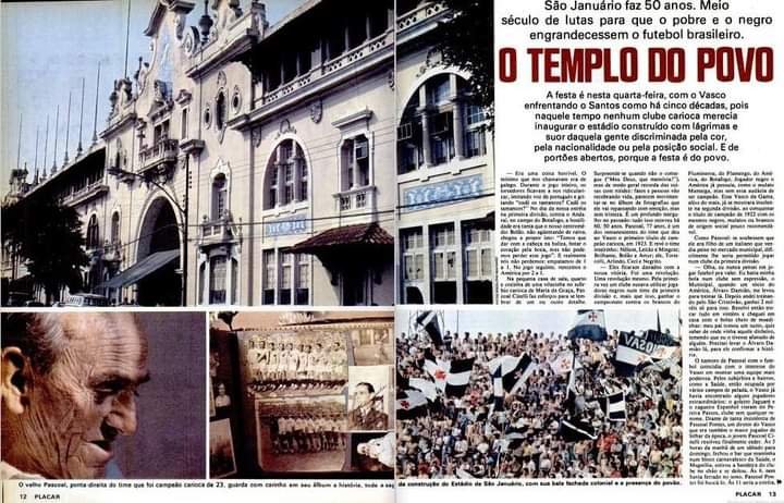 Reportagem da Placar de 1977, os 50 anos de São Januário e abaixo já velhinho, o ídolo Paschoal, ponta-direita do Vasco entre 1921 a 1932 (262 J / 86 G) e depois funcionário, o 'Trem do Luxo' dos Camisas Negras viu e participou da construção do estádio do Legítimo Clube do Povo.