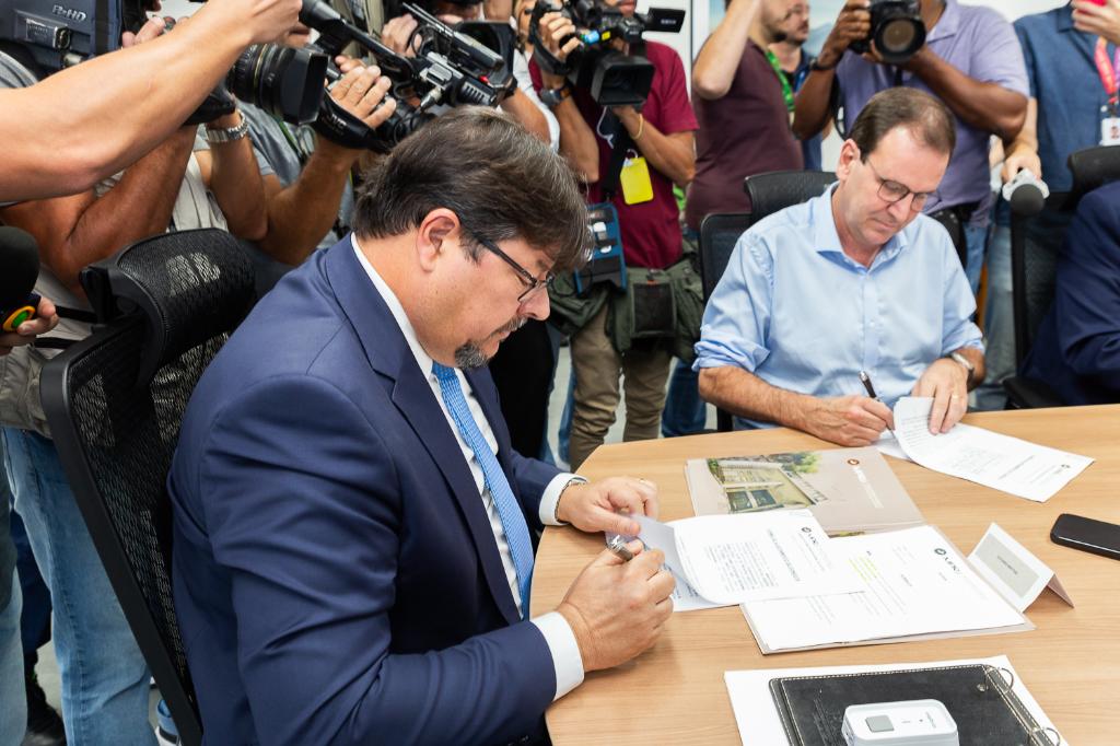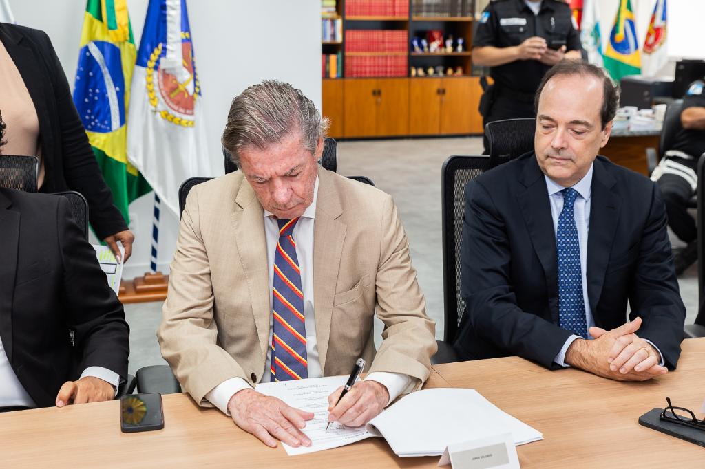 O Ministério Público do Estado do Rio de Janeiro (MPRJ) e o Vasco da Gama celebraram, nesta quarta-feira (13/09), acordo para que sejam implementadas medidas importantes para aumentar a segurança e o conforto dos torcedores no interior e no exterior do Estádio de São Januário. A próxima etapa é a homologação judicial do Termo de Ajustamento de Conduta (TAC), que permitirá a retomada de jogos com a presença de público no estádio, interditado desde junho deste ano. Assinaram o TAC o procurador-geral de Justiça, Luciano Mattos; o presidente e vice-presidente do Vasco, respectivamente Jorge Salgado e Carlos Osório, o CEO do Vasco SAF, Lucio Barbosa; e, como intervenientes, o prefeito do Rio, Eduardo Paes; o secretário de Estado de Polícia Militar, Luiz Henrique Pires, representando o governador Claudio Castro; o chefe de gabinete da Secretaria de Estado de Defesa Civil e do Corpo de Bombeiros, Rodrigo Polito, representando o secretário de Estado de Defesa Civil e do Corpo de Bombeiros, Leandro Monteiro; o delegado Pedro Medina, subsecretário de Polícia Civil, representando o secretário Fernando Albuquerque e o presidente da FERJ, Rubens Lopes.