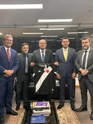 O ministro do Supremo Tribunal Federal, Gilmar Mendes, se reuniu na tarde de hoje (13), em Brasília (DF), com deputados federais para debater sobre a interdição do estádio de São Januário, e ganhou uma camisa do Vasco.