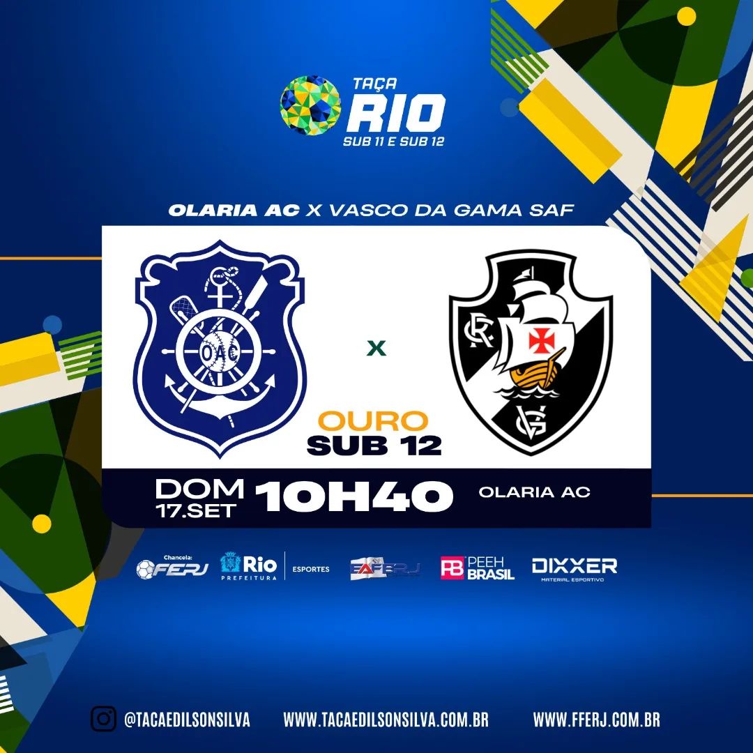 Pela Taça Rio, Vasco enfrenta o Olaria no Sub-11 e no Sub-12 neste domingo a partir das 9h