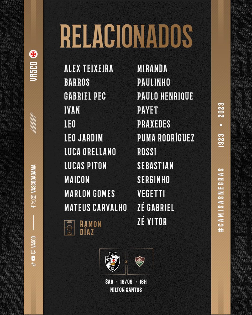 Confira os relacionados do Vasco para o jogo contra o Fluminense