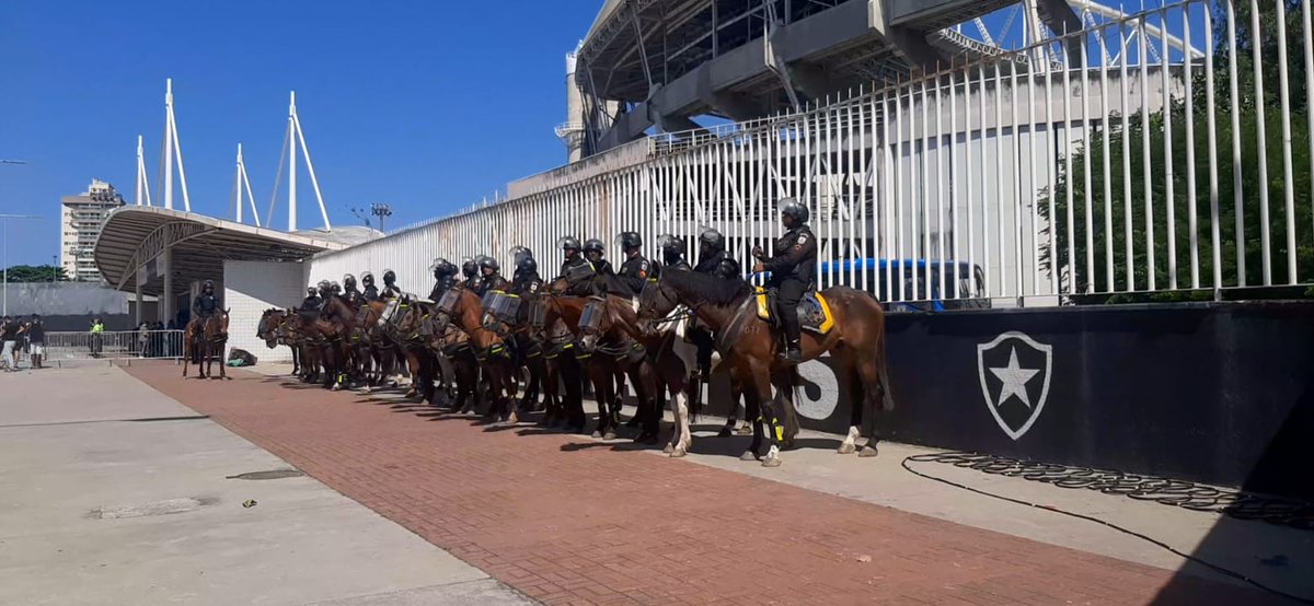 Cavalaria da @PMERJ - #RPMont - reforça o policiamento ostensivo nos arredores do estádio Nilton Santos, na tarde deste sábado (16/09), para o clássico entre @VascodaGama e @FluminenseFC, válido pelo @Brasileirao.