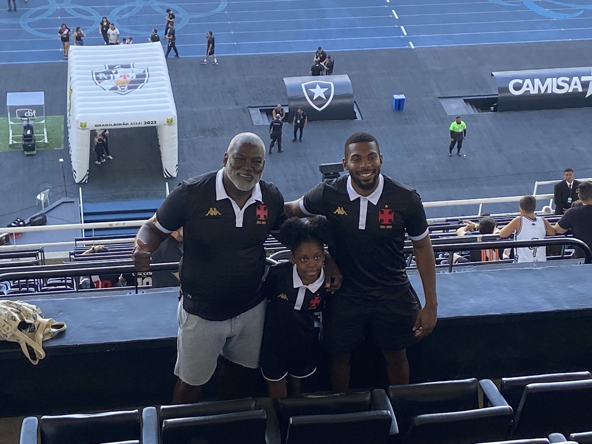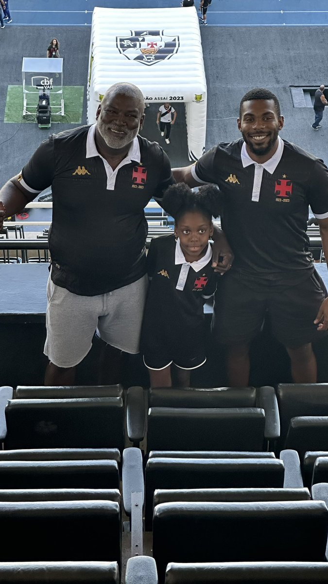 Walmir, Manoela e Jaime, a família que foi modelo para a linda terceira camisa que o Vasco lançou hoje, estão no Nilton Santos ✊🏾